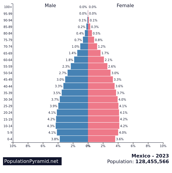 You can go to the PopulationPyramids.net site and play around; it’s fascinating to compare the differences among countries and think about why these differences occur and what they might mean.